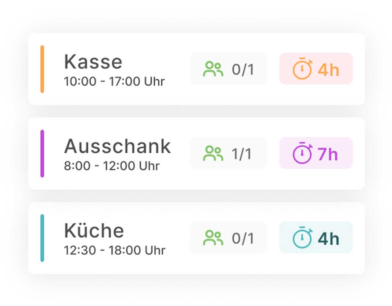 festlegenJetzt wird’s konkret: Du legst alle Aufgabenbereiche und zu besetzenden Schichten fest.